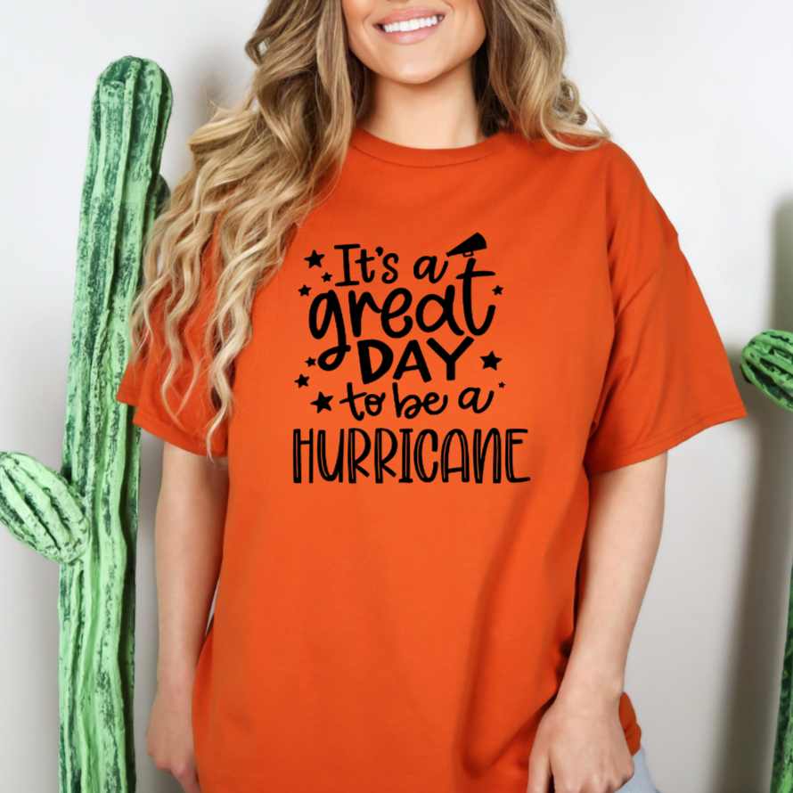 Celebrate your spirit with the "It's a Great Day to be a Hurricane" Gildan Softstyle T-shirt, crafted for comfort and durability. This shirt combines a soft, breathable fabric with a flattering fit, ideal for everyday wear or showing team pride. Its quality construction ensures long-lasting wear, making it perfect for fans who want both style and performance.